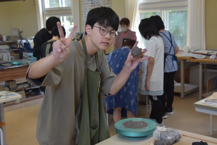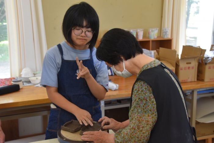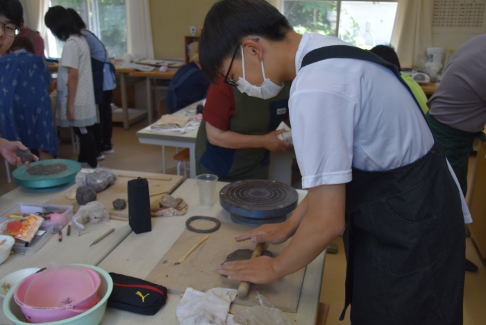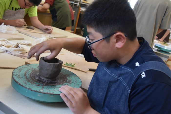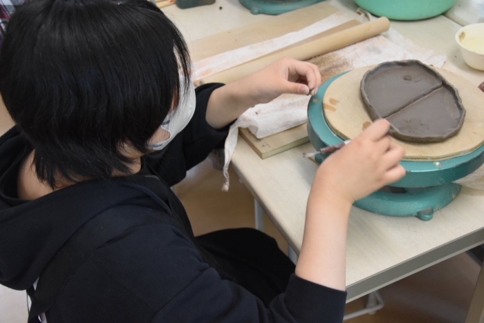 今日は2年生が陶芸教室の皆様に教えていただきました。