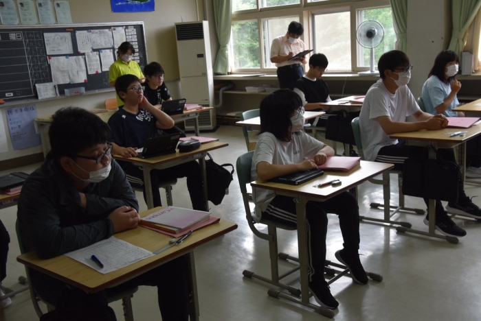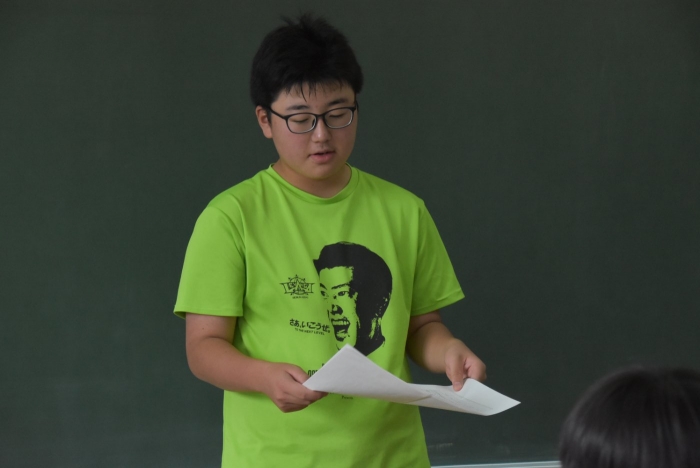 学級弁論大会のにお休みをしていた人の発表をおこないました。