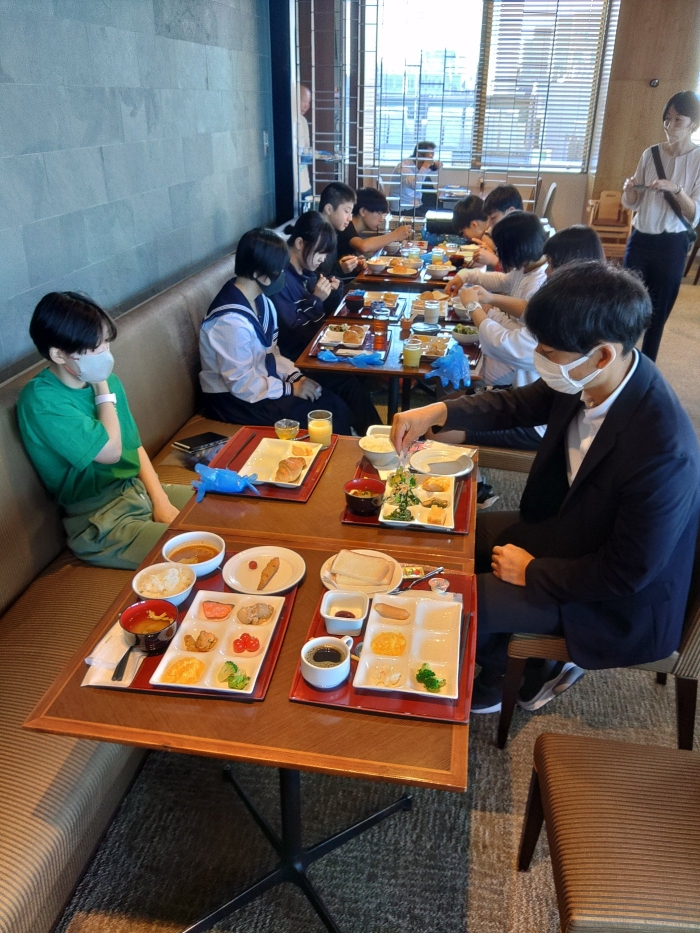 おはようございます。最終日の朝となりました。お馴染み食事のシーンです。上級学校訪問頑張ります。