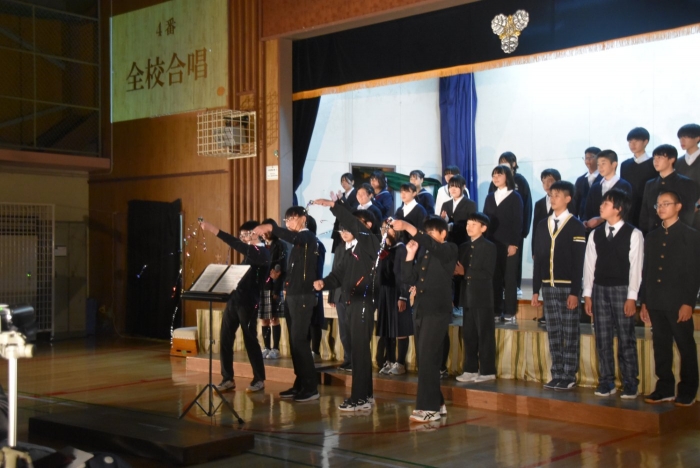 学校祭7 2023年10月22日(日) 学校祭のフィナーレです。 生徒会執行部による挨拶です。 入場制限なしでの学校祭でしたが、100名弱の方に来校いただき学校祭を終了することができました。 ありがとうございました。