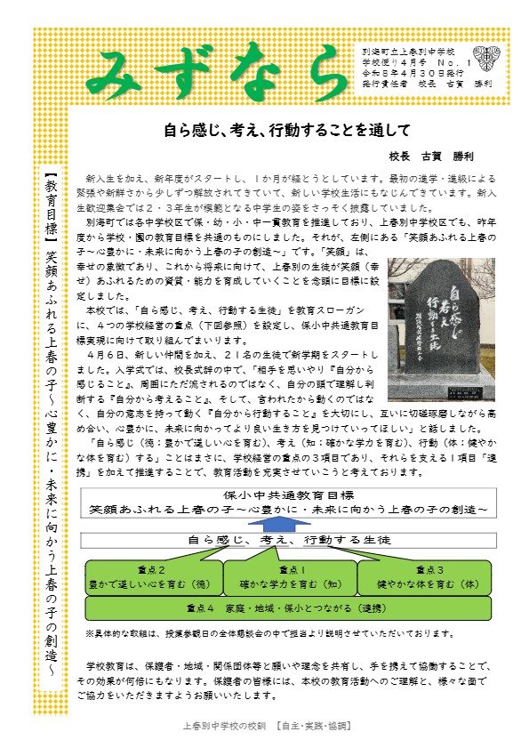 今年度最初の学校だよりとなります。A4表裏になります。ご高覧いただけると幸いです。