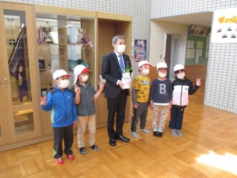 【上風連中】すずらん 2022年05月20日(金) 幼保小中連携 小学1年生が「すずらん」を中学校に届けてくれました。 「すずらん贈呈」は小学校の伝統授業です。 実は、中学校には、過去に小学校からいただいて桜の木の前に植えたすずらんがあります。 校舎の裏には、すずらん以外にもツツジなどいろいろな花が咲いています。