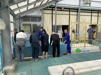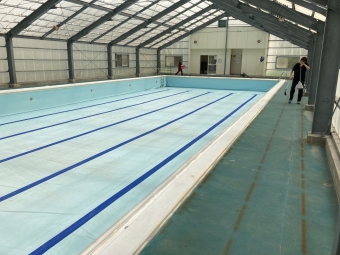 運動会の会場を準備したあとで、プールの清掃をおこないました。