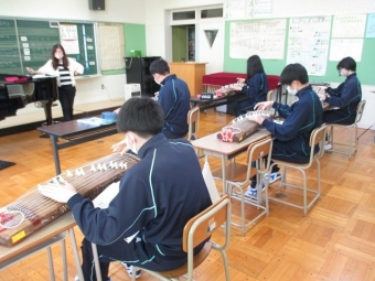 【上風連中】1日の様子 2022年06月14日(火) 日々のできごと 音楽では、和楽器「箏」を学んでいます。 国語では、『「なりたい自分」を、名言や印象深い言葉を引用して説明する』ために、情報を集めて引用する言葉を決定する授業をおこなっていました。 テスト前で部活動が中止のため、バス待ちの時間に、学習会をおこないました。