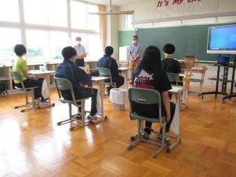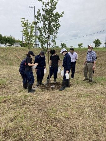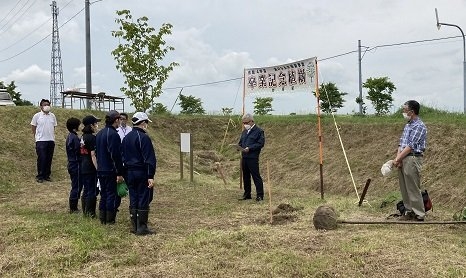 【上風連中】卒業記念植樹、木育教室 2022年06月28日(火) 日々のできごと 本町では、平成29年度から子どもたちが樹木とふれあい、自然環境への興味や関心を深めることを目的として、実のなる木の植樹を行っています。 令和3年度からは、町内の卒業生を対象に卒業記念植樹を実施しています。 昨年先輩たちが植えた隣に「エゾヤマザクラ」を植えました。 教室に戻ってからは、森林インストラクターによる「木育教室」を実施しました。 普段、何気なくみている木について学び、視野が広がりました。