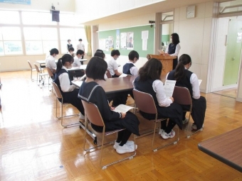 「挨拶」のこと、「月目標」のことなど生徒会役員からの話がありました。