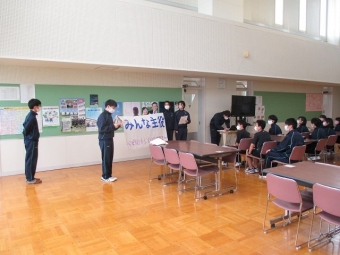 生徒会から文化祭のテーマの発表と、3年生から全校劇の説明がありました。