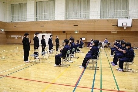 【上風連中】対面式を行いました。 2021年04月09日(金) 日々のできごと 9日(金)、新入生に学校のことを知ってもらうための対面式を行いました。 このあと、一年生は体験入部を経て部活動を決めたり、委員会の所属を決め、少しずつ中学校生活を本格化していきます。