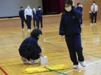 【上風連中】保体フェス 2023年03月07日(火) 日々のできごと 保体委員会が企画した保体フェスをおこないました。 用意された7つの指令に早く答えたチームの勝ちです。 3チームに分かれておこないました。 学校内にあるものを体育館まで運んでくる指令が出ました。 図書室の椅子、教科書のつまったカバン、跳び箱など重さはさまざまでした。 みんなが楽しく体を動かすことができる企画でした。