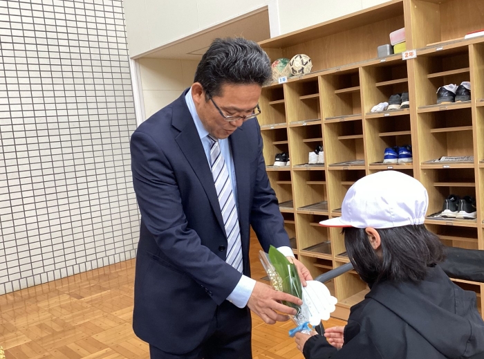 緊張しながらもしっかりとメッセージを伝えて、手渡ししてくれました。