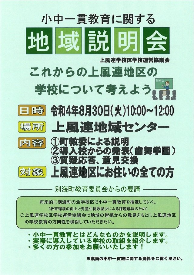 【上風連地区】小中一貫教育に関わる地域説明会のご案内