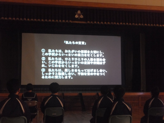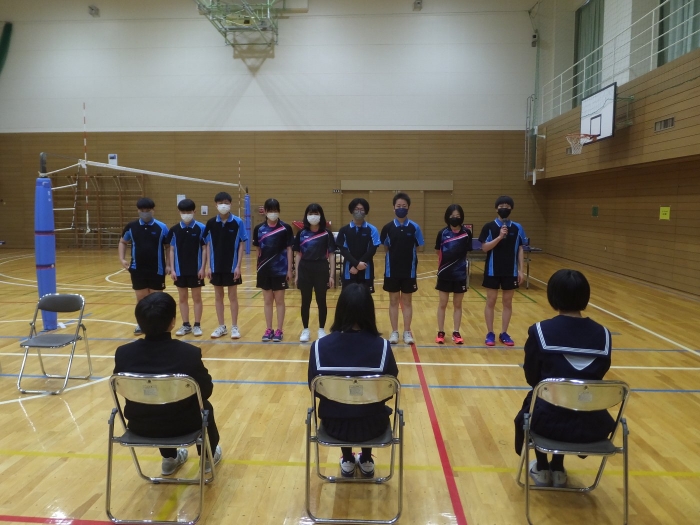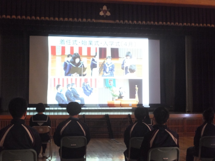 新入生歓迎会 2023年04月11日(火) 日々のできごと 4月11日(火)、6時間目に新入生歓迎会を行いました。映像を交えながらの委員会活動の説明、実演を交えての部活動の説明など、新入生が早くこの学校になじむように「おもてなしの心」が感じられる新入生歓迎会でした。2・3年生の皆さん準備ご苦労様でした。1年生の皆さん、中学校の生活に早くなじんで学校生活を楽しんでください。