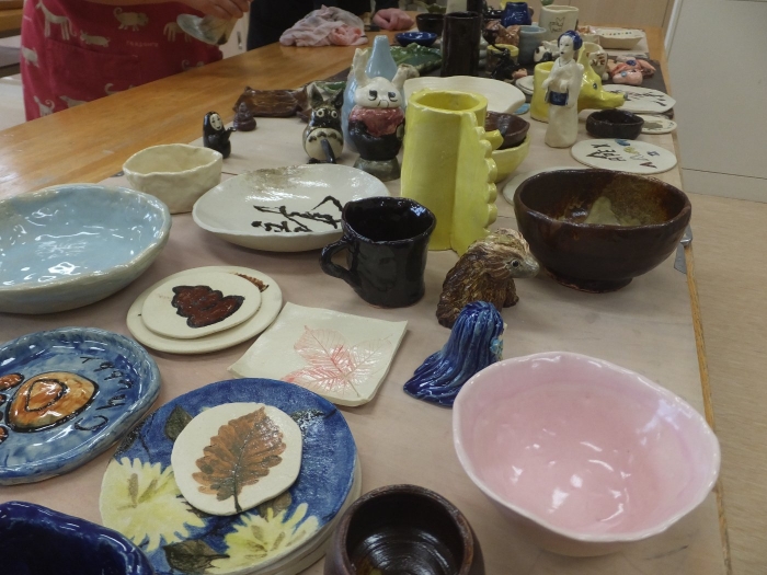 陶芸作品が焼き上がりました 2023年10月10日(火) 日々のできごと 10月3日(1年生と3年生)、5日(2年生)に行った親子陶芸教室で作った陶芸作品が焼き上がりました。皆さん小学校の時から制作しているためか、色々な造形、色彩に挑戦し、個性豊かな素晴らしい作品が出来上がりました。作品の数が多いのでこの後、第2弾の窯焼きにかかります。