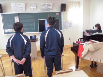 5校時、3年生は音楽。自宅待機のクラスメイトと、「リモート配信」でつながりながら授業を進めていました。