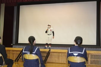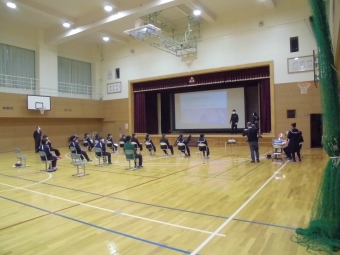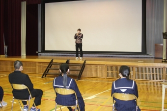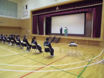 6校時、「新入生歓迎会」の様子。生徒会や委員会、各部からのアピールの様子です。