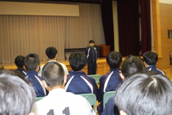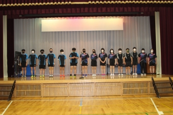 一学期末テストが終わった午後、明日から毎週末開催される地区中体連大会に向けた壮行式を行いました。