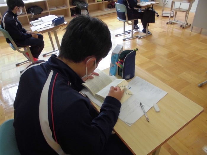3年生は国語。「熟字訓」の学習です。一日は「いちにち」「ついたち」と読み方がありますが、それぞれで意味が変わってきます。辞書を使い意味を調べながら学習を進めていました。