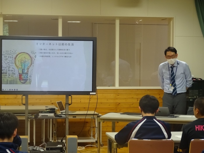 本日5校時目は、別海町教育委員会生涯学習課職員をお迎えして、「SNSとの上手な付き合い方」についての出前講座を開催しました。普段から慣れ親しんでいるSNSも年齢制限があることや、利用については自己責任であることなどを学びました。