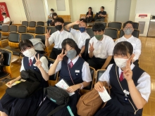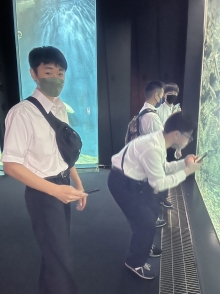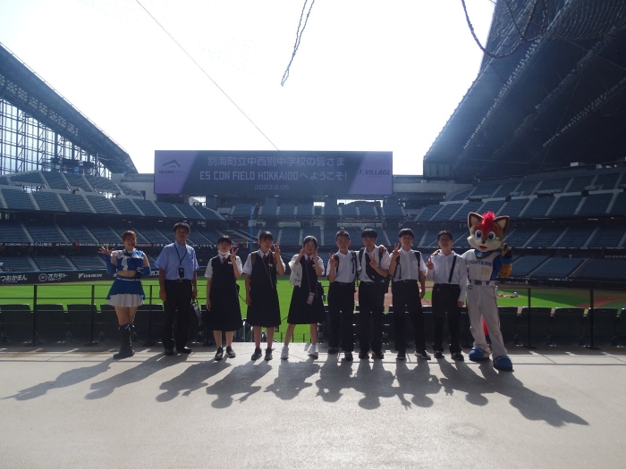 修学旅行③(1日目の写真) 2023年09月06日(水) 生徒は本日の夕食の焼肉バイキングを食べ(量はそれほどではありませんが)、ホテルに戻ってきたところです。このあと本日の様子の写真を数枚添付します。 まずは、新千歳空港まで 最初の目的地は千歳水族館 続いてエスコンフィールド、ツアーガイドはファイターズガール、ビジョンには学校名が紹介されました 担任はベンチで監督気分です。 夕食はバイキングでした。