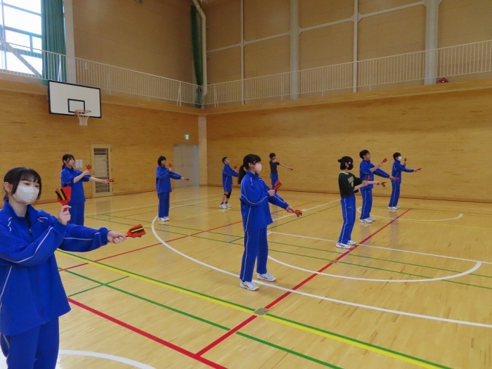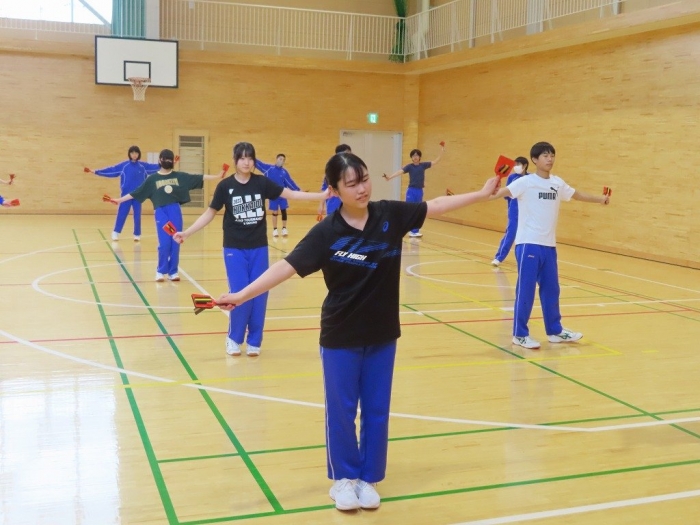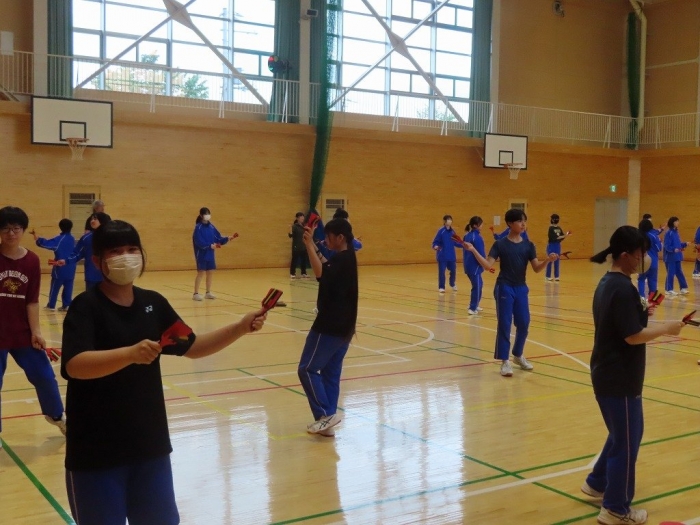 体育祭練習③ 2024年07月12日(金) 授業の様子 今日の体育祭練習は、まず「よさこい」の練習から行いました。移動の隊形や鳴子の音が揃う等、練習の成果が出てきました。 各組対抗の競技の練習後に、実際にグラウンドで試技をしたり入退場の練習をしたりしました。試技を通して、改めて作戦を練り直し、来週の練習に繋げてほしいと思います。 体育祭に向けた練習にも熱が入り、汗だくになりながら取り組む毎日です。水分補給を徹底する等の熱中症対策をしていますが、身体が疲れていると思いますので、週末からの3連休を利用して少しでも身体を休めてください。