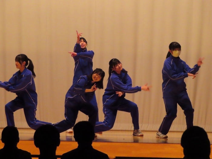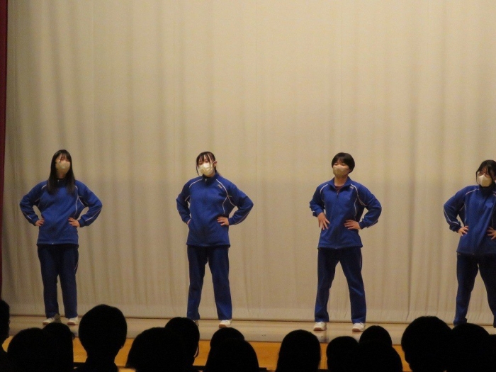 今日の午前中に、体育の授業の一環として、ダンス発表会を実施しました。全校生徒がそれぞれのグループに分かれての発表です。他のグループの発表の際には、しっかりと盛り上げ、互いに励まし合いながら楽しい雰囲気を作り上げました。みんなが一生懸命に練習してきたことが伝わり、見ている側も一体感を感じられました。自分のグループの発表が終わった後も、他のグループのパフォーマンスに注目し、共に楽しむことができて、とても充実した時間となりました。