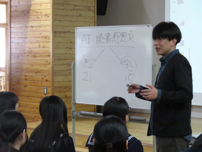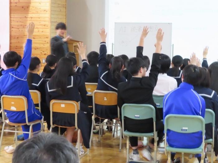 10日(月)の5時間目に、別海町教育委員会主催のもと、学校DX戦略アドバイザー事業が実施されました。現在、生成AIは教育現場にも広がりを見せ、すでに多くの生徒がその技術を積極的に活用しています。AIは単なるツールではなく、私たちの生活や学習を深くサポートし、今後ますます重要な役割を担うことが予想されています。