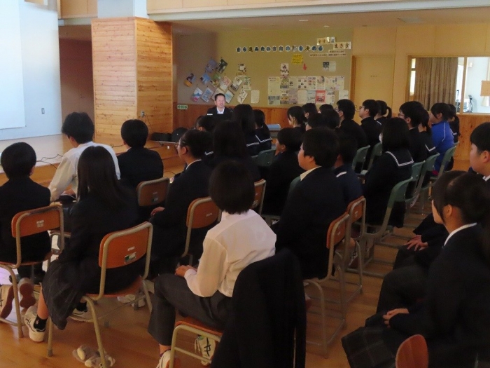 今日の5時間目に、北海道釧路方面中標津警察署 生活安全課長 村瀨寛之様を講師としてお迎えし、全校生徒を対象に「薬物乱用防止教室」を実施しました。