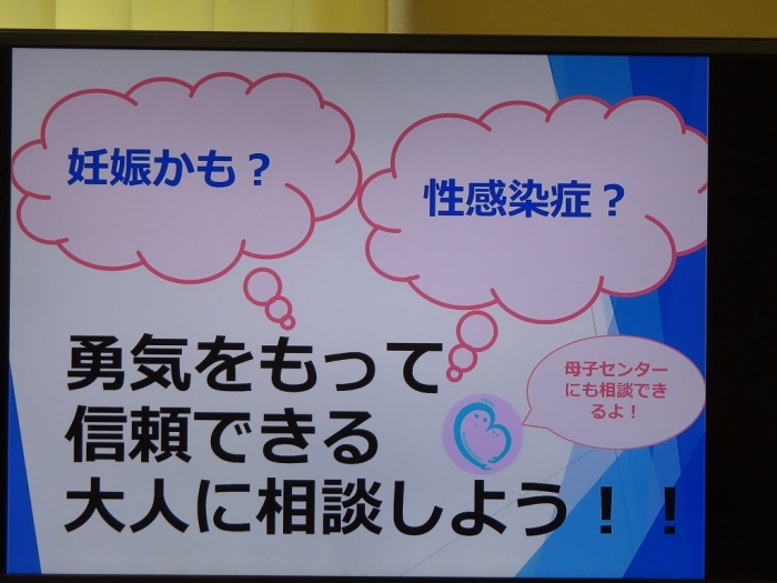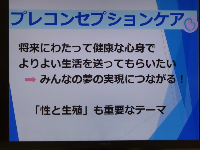 授業では、「プレコンセプションケア(将来の妊娠や出産を考え、自分の健康に目を向けること)」についてのお話をはじめ、「性感染症」や「妊娠」、「赤ちゃんを育てるために必要なこと」など、命や将来に深く関わる内容について、具体的でわかりやすくお話しいただきました。
