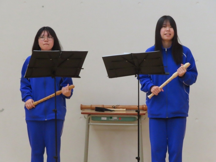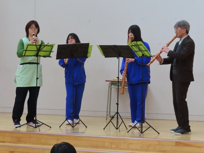 今日の昼休みには、リコーダー部がロビーコンサートを開催しました。リコーダー部は、今年1月の全道リコーダーコンテストをもって3年生が引退し、現在は1年生2名と顧問の先生方で活動しています。