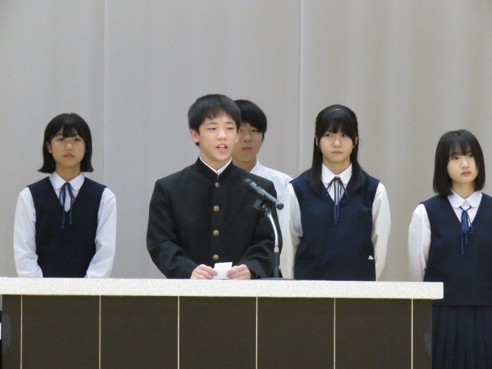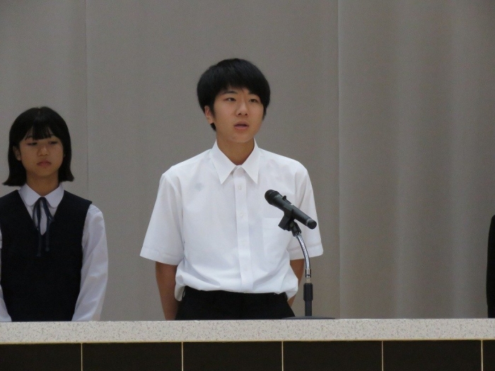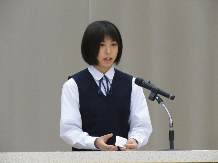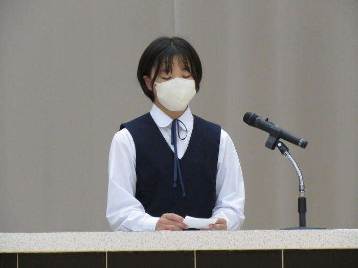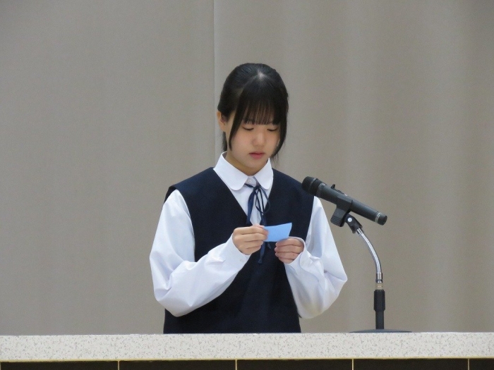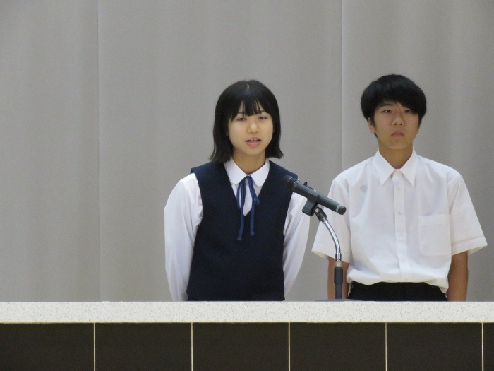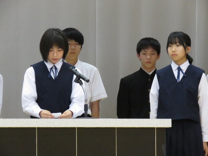 各学年代表の挨拶では、1年生Oさん、2年生Nさん、3年Sさんがそれぞれ2学期の抱負述べました。