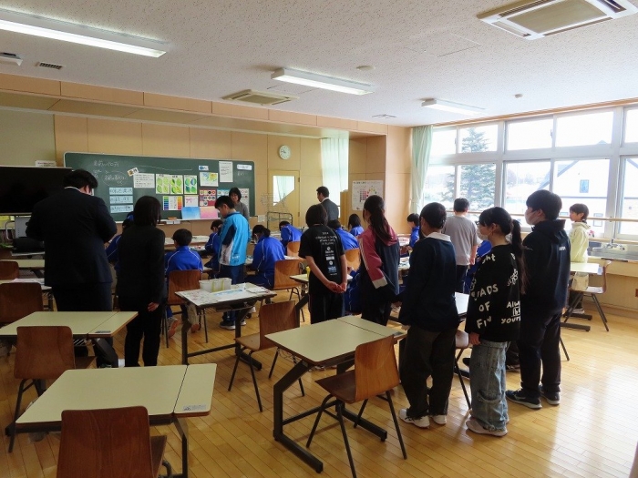 今日午前中、中春別小学校6年生を対象とした中学校体験入学を実施しました。まずは、校長先生のお話があり、6年生は校長先生から「中学校で楽しみにしている教科」について聞かれ、その結果、1位が「数学」ということがわかりました。