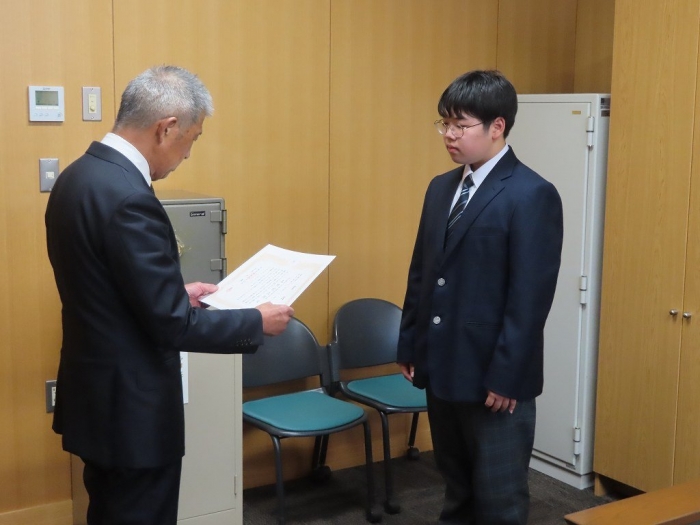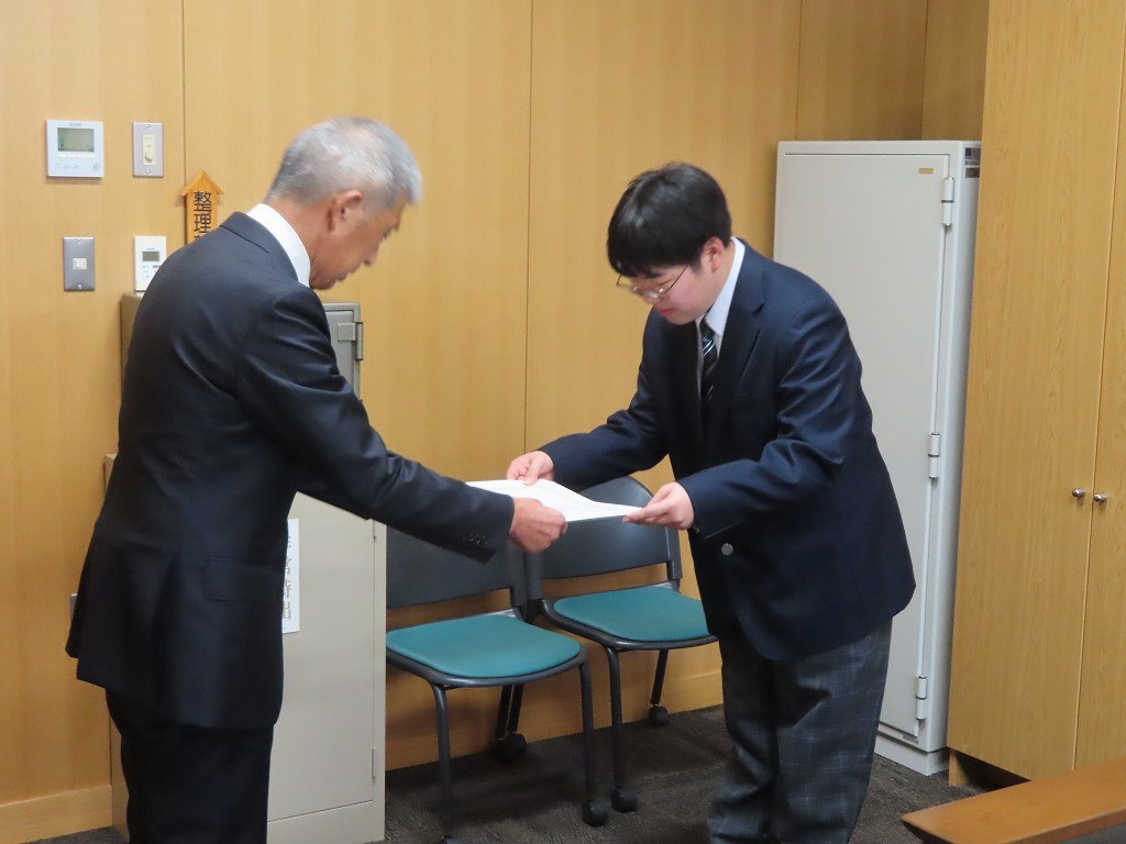 毎年、間税会に出品している「税の標語」について、1年生Tさんが北海道間税会連合会会長賞を受賞し、本日表彰されました。