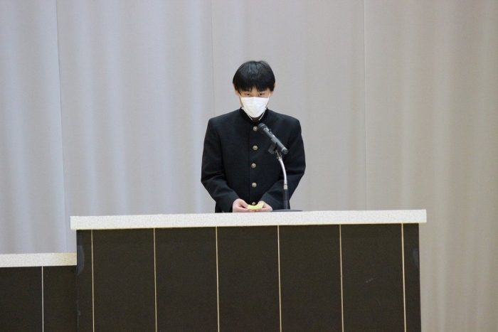 3学期は1年の集大成となる大切な学期です。2学期終業式で皆さんがそれぞれ整理した「継続」「改善」「挑戦」と「向上心」を大切にしながら、次の学年、次のステージへとつながる力を身につけていける3学期にしてほしいと思います。46名1人1人が自分の目標に向かって努力し、さらに成長してくれることを楽しみにしています。