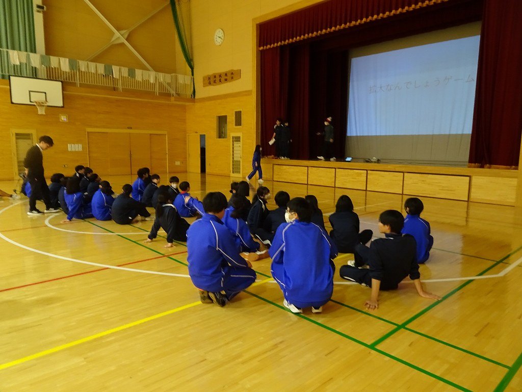 内容は「全校かくれんぼ」「格付けチェック」「拡大なんでしょう」の3つのゲームで、全校生徒が学年の枠を越えて楽しめるよう工夫されたプログラムでした。
