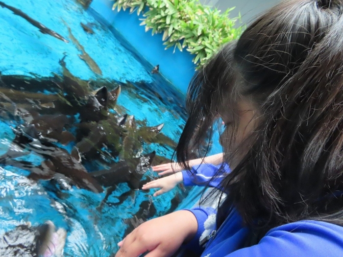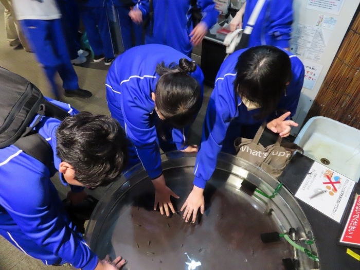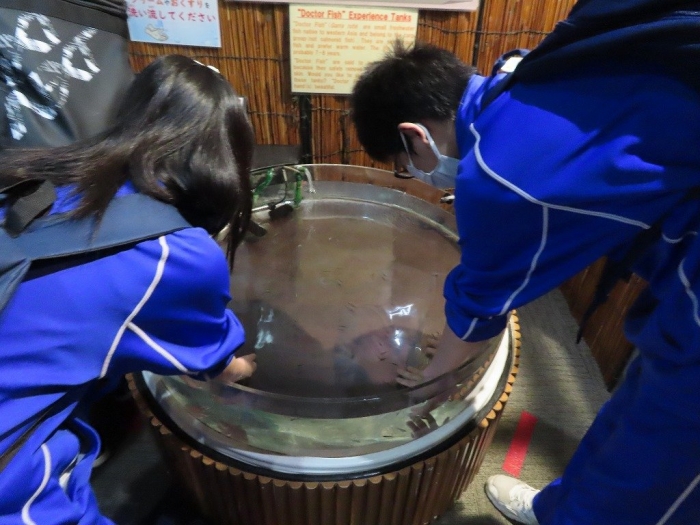 宿泊研修② 2024年06月13日(木) 行事 続いて向かったのは「サーモン科学館」です。 こちらでは、「鮭」のことについて、映像を見たり講話を聞いたりしました。鮭にも色々な種類があること、食卓や回転寿しで見られる「サーモン」のこと等を知る良い機会になったと思います。 講話の後には、ドクターフィッシュに手の角質を食べさせたり、チョウザメの指パクを体験したりと、思い思いの時間を過ごしました。