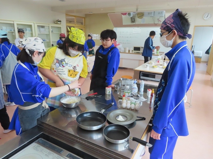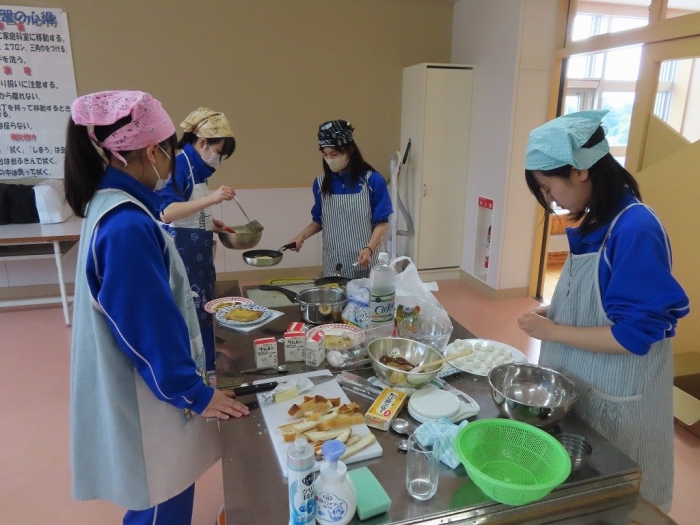 宿泊研修2日の朝を迎えました。全員元気な様子を見せながら、朝食準備に取り組んでいます。