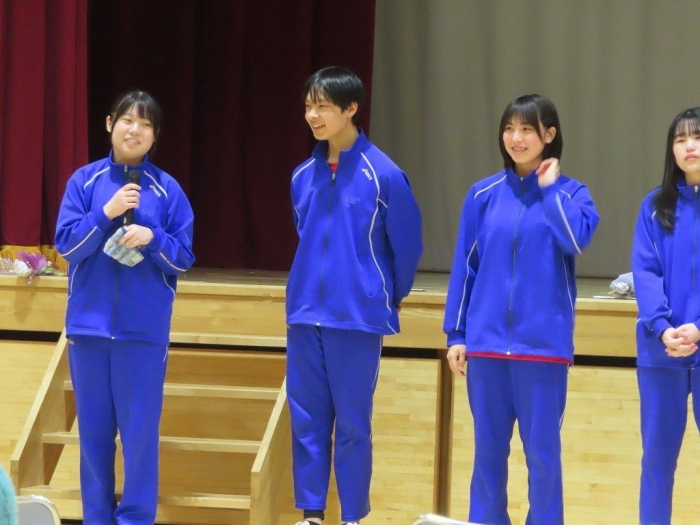 卒業生たちは最後に一人一人、在校生や先生方への感謝の気持ちを込めて挨拶をしました。その中には、今まで支えてくれた人々への深い感謝を述べながら涙を見せる卒業生もおり、あたたかな雰囲気の中、3年間の思い出が蘇る瞬間でもありました。どの言葉も、卒業生たちの成長を感じさせ、参加している全員にとって忘れられないひとときとなりました。