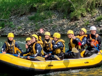 快晴で適温。最高のコンディションのなかラフティングを満喫しました。