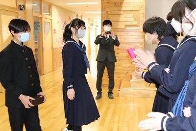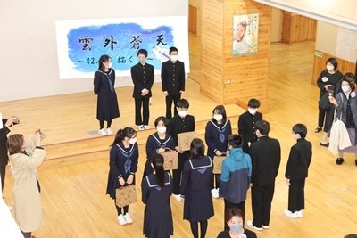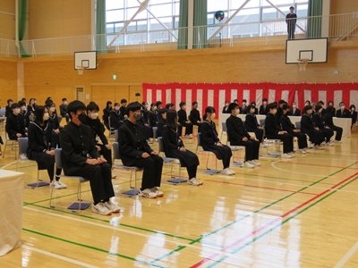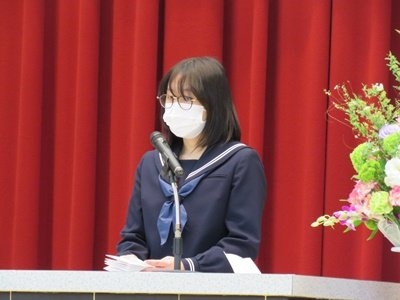 3月10日に本校の第56回卒業式が執り行われました。卒業式中は、在校生の落ち着いて参加している姿、卒業生の凛とした表情で卒業証書を受け取る姿、送辞や答辞を堂々と発表する代表生徒の姿など、輝かしい姿を見ることができました。卒業生の保護者の皆様方には、本校の教育活動に多大なるご支援を賜わり心より感謝申し上げるとともに、お子様が義務教育を無事終了されたことに対しまして、あらためてお祝い申し上げます。最後になりましたが、ご臨席いただけなかった皆様方からたくさんのご祝辞をいただきました。心よりお礼申し上げます。