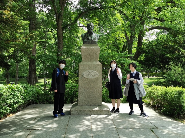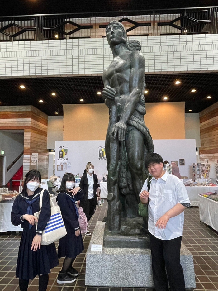 修学旅行12 2023年06月01日(木) 行事 途中多少の迷子になりながらも時間前に全員目的地へ到着できました。2時間弱の訪問でしたがどの訪問先も得たものは多かったようです。 続いて自主研修です。全員の班が近代美術館の見学をコースに入れています。現在2つの班が到着、1つの班が予定よりやや遅れていますがまもなく訪問となっています。 到着しました。