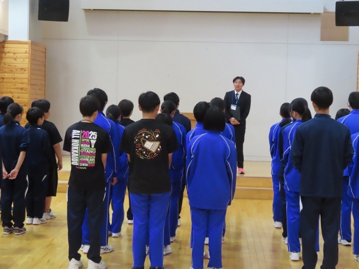教育実習生が来ました 2025年08月29日(金) お知らせ 本日より9月19日までの3週間、本校の卒業生1名が教育実習を行います。今朝の全校集会にて全校生徒へ紹介がありました。 挨拶の際は、きっと緊張もあったことと思いますが、そうした様子を感じさせることなく、爽やかで熱意のこもった挨拶をしてくれました。 その姿に生徒たちも応え、大きな拍手を送ってくれました。 実習期間中は、生徒との関わりや授業を通して、たくさんのことを学び、今後に生かしてもらえたらと思います。