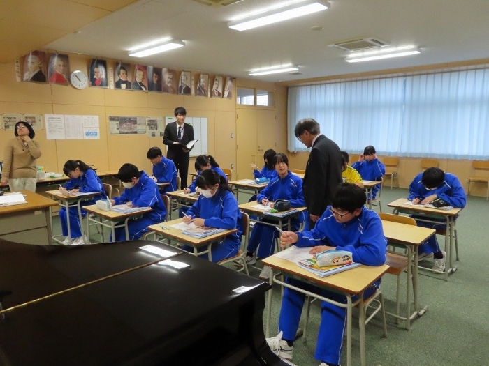 今日は校内研修日でした。今回の研修では、根室教育局から湯浅公志指導主事、別海町教育委員会から瀬川航平指導参事にご来校いただきました。午前中に全学年の授業を公開し、午後は1年生数学の授業を参観しました。