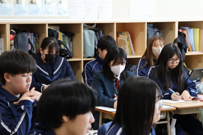 本日、中中連携事業の一環として、本校の1・2年生が上西春別中学校で道徳の授業を受けてきました。