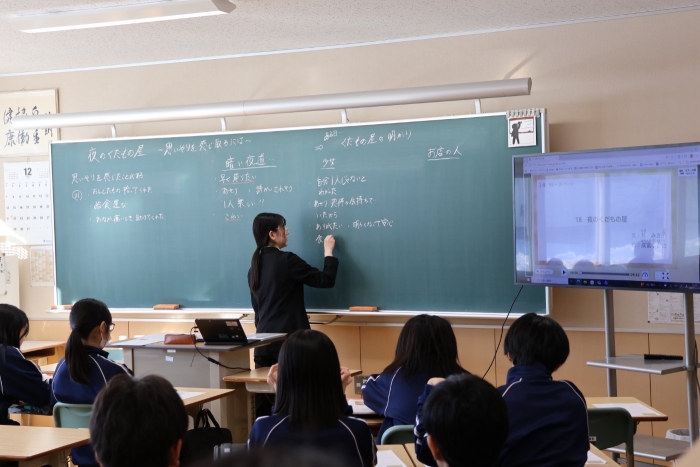 教材「夜のくだもの屋」を通して、思いやりの大切さだけでなく、人は互いに助け合って生きていることを学びました。