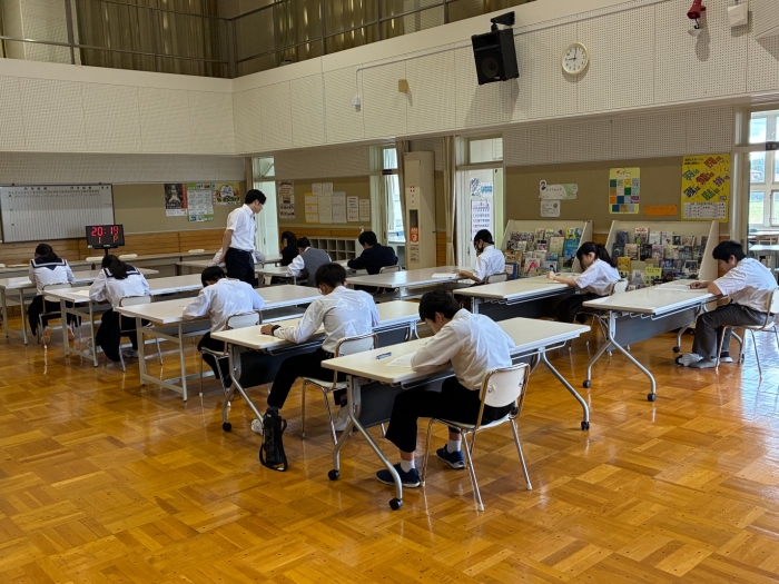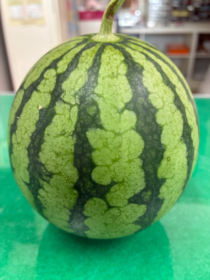【2学期】前期期末テスト1日目&スイカ収穫 2025年09月04日(木) 日々のできごと 本日前期期末テスト1日目が行われ、子ども達はこれまでの学習を思い出しながら、一生懸命に最後まであきらめず取り組む姿が見られました。 さて、技術科(菜園)で育てたスイカを収穫しました。 とても大きなスイカ と思いきや直径10㎝程度の可愛らしいスイカでした。
