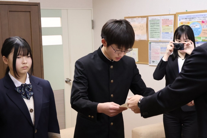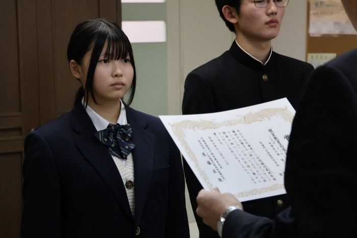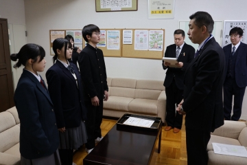 本日、校長室にて表彰式が行われ、北海道教育庁根室教育局局長の遠藤直俊様より、一人ひとりに表彰状が手渡されました。
