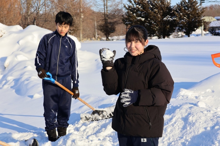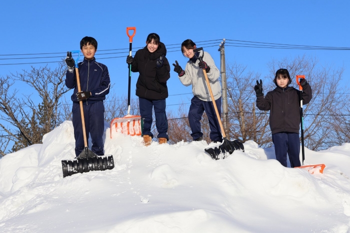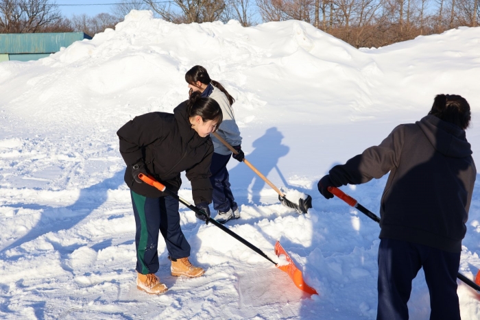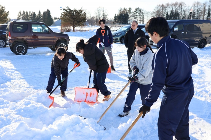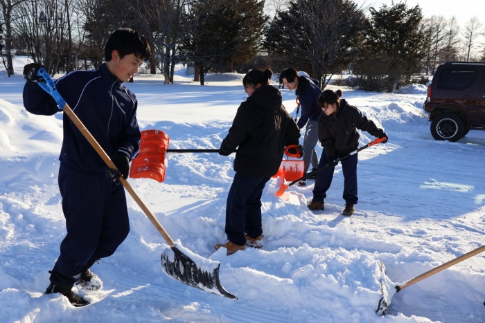 本日、バドミントン部の皆さんが、学校駐車場の雪かきをしてくれました。