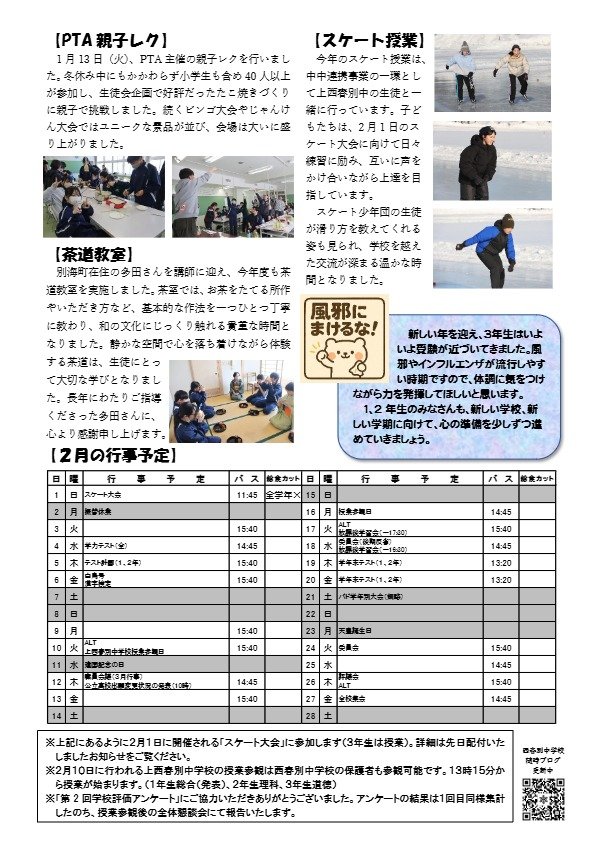 【3学期】中中連携事業(スケート授業)