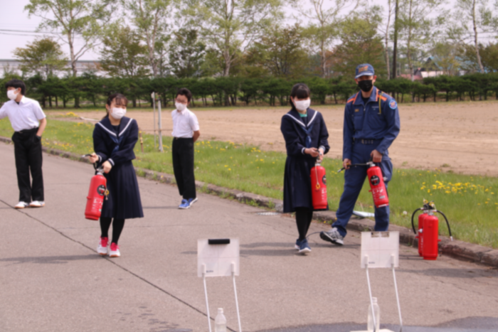 【西春別中学校】避難訓練 2022年05月23日(月) 5月20日(金)避難訓練を行いました。 地震からの火事を想定した訓練でしたが、みんな真剣に取り組み、速やかな避難が出来ました。 避難後、別海消防署の方から講評を頂き、実際に災害が起きてしまった時にどう動くべきかを確認しました。 最後に水消火器を使って消火訓練をしました。