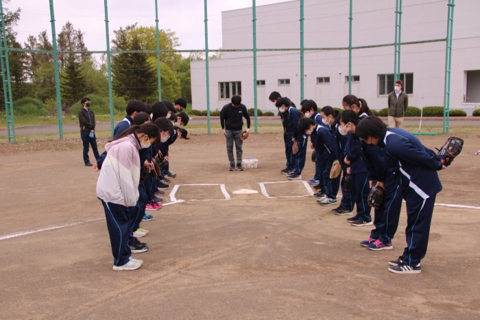 【西春別中】グラウンド開きを行いました 2022年06月10日(金) コロナの影響や雨で延期になっていたグラウンド開きをやっと行うことが出来ました。 天気にも恵まれ、みんな楽しそうにボールを追いかけていました。 開会式を行い、ケガの無いように準備運動をします。 さあ、試合開始です。 ピッチャー I 先生、キャッチャー T先生で試合スタートです。 接戦を制しチーム「鉄棒」が勝利です。